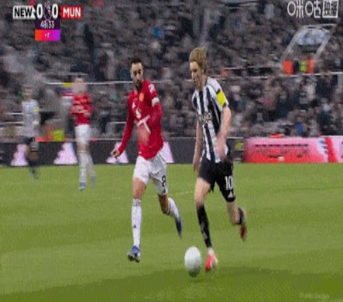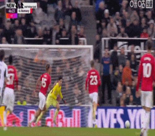但兩分鐘后,B費(fèi)在禁區(qū)內(nèi)放倒戈登,主裁判判罰點球。戈登親自主罰命中,紐卡1比0領(lǐng)先。多打一人的曼聯(lián)反而先丟球。