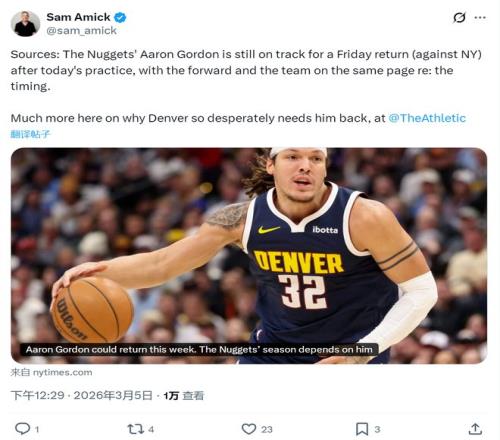 第二個,阿隆-戈登將在后天對陣尼克斯的比賽中正式復出。