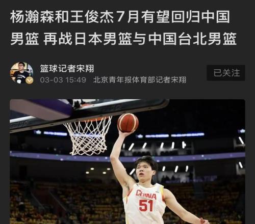 就在今晚,中國(guó)男籃傳來(lái)第三大好消息!不止楊瀚森、王俊杰或歸隊(duì)