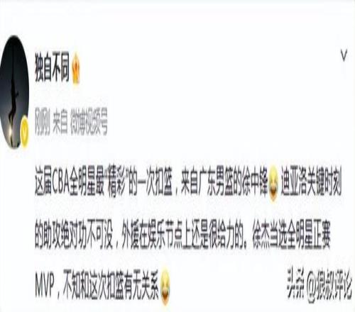 這屆CBA全明星最“精彩”的一次扣籃,來自廣東男籃的徐中鋒[笑cry] 迪亞洛關(guān)鍵時(shí)刻的助攻絕對功不可沒,外援在娛樂節(jié)點(diǎn)上還是很給力的。徐杰當(dāng)選全明星正賽MVP,不知和這次扣籃有無關(guān)系