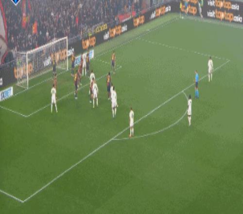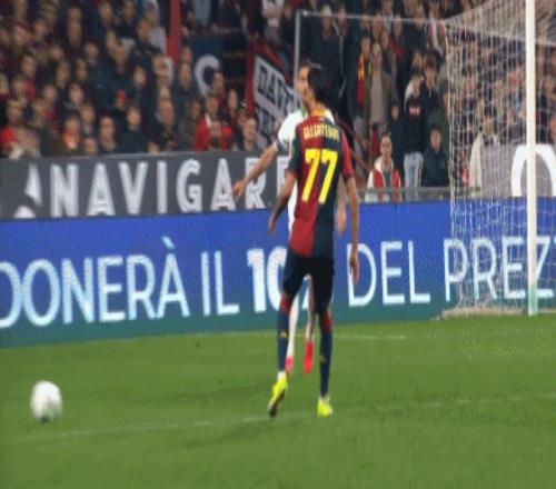 第52分鐘,埃勒特松造點,梅西亞斯點射破門,熱那亞1-0羅馬