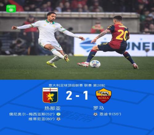 北京時間3月9日意大利足球頂級聯(lián)賽 聯(lián)賽 第28輪,熱那亞主場對陣羅馬。熱那亞儒尼奧爾-梅西亞斯破門,維蒂尼亞破門。羅馬恩迪卡破門。最終比分熱那亞 2-1 羅馬。