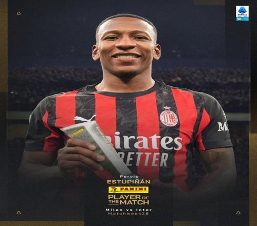 意甲第28輪迎來本賽季次回合米蘭德比,最終憑借著埃斯圖皮尼安的進球,米蘭1-0擊敗了國米。這位厄瓜多爾國腳也就此被意甲官方評為本場比賽全場最佳。