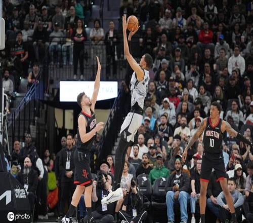 上半場最后45秒,馬刺隊其實就已開始起勢了,哈珀和??怂箖纱螐娡蝗缡中g(shù)刀一般劃開火箭的防線,逼著后者不得不倉促將防守陣地回縮,但下一個回合,文班的一記壓哨三分,又給了火箭隊當頭一悶棍。