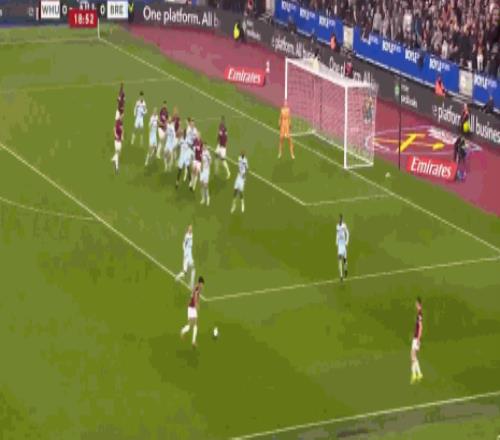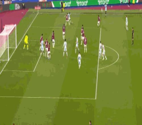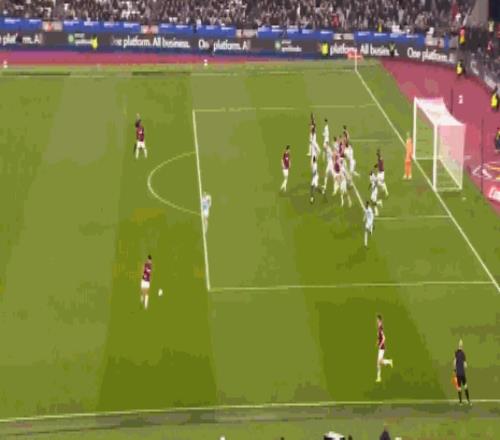 第20分鐘,先拔頭籌,鮑恩門前得分,西漢姆聯1-0