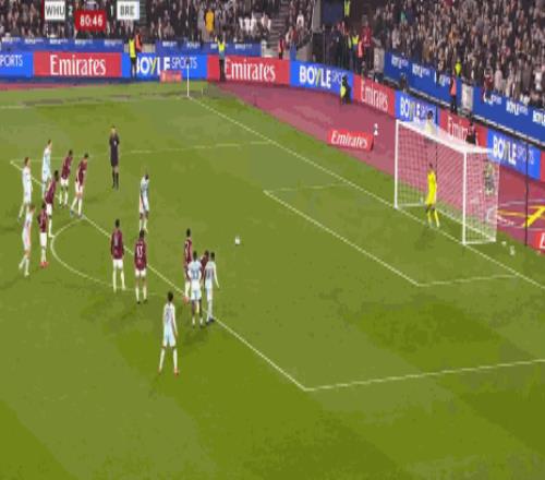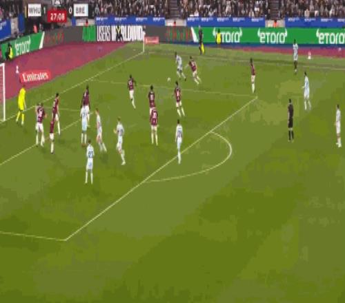 第34分鐘,卡約德絆倒特拉奧雷送點,鮑恩主罰命中,西漢姆聯2-1