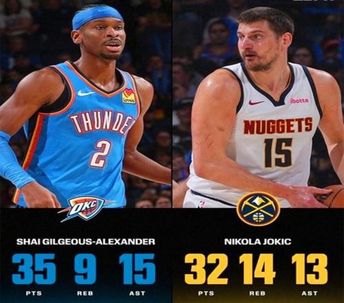 而本場亞歷山大的對手約基奇也是其競爭MVP道路上最大的對手,后者本場同樣打出統(tǒng)治級別表現(xiàn),全場苦戰(zhàn)40分17秒,19中12,三分6中3爆砍32分14板13助1蓋帽三雙,無懼多爾特一級惡意犯規(guī),關鍵時刻連得9分一度率隊將比分追平。