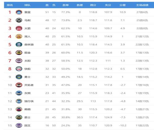 今日比賽后火箭、湖人、森林狼排名互換,其他西部球隊(duì)排名不變。