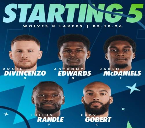 首發(fā)陣容方面,湖人隊這邊,詹姆斯、克勒貝爾、海斯等人缺陣,雷迪克教練排出的首發(fā)五人組為:盧卡-東契奇、奧斯汀-里夫斯、馬庫斯-斯馬特、八村壘、德安德烈-艾頓;森林狼這邊,首發(fā)陣容則為:迪溫琴佐、愛德華茲、麥丹、蘭德爾、戈貝爾。