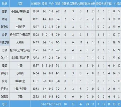 本場北京隊(duì)數(shù)據(jù)如下: