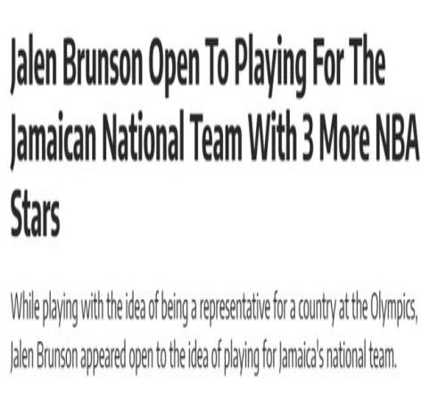 布倫森愿代表牙買加參加奧運(yùn)!有望集結(jié)多位NBA球星或成超級(jí)黑馬