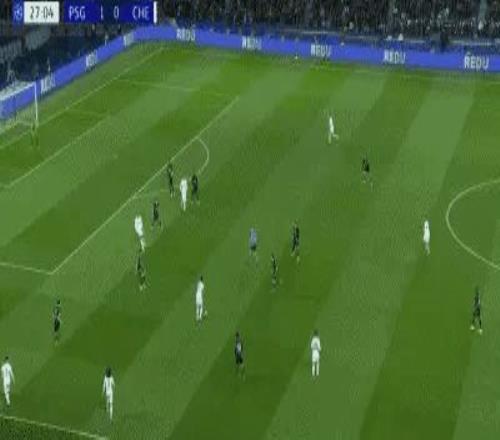 兩隊進入狀態(tài)都很快。第10分鐘,大巴黎一次相對簡單的戰(zhàn)術(shù),配合成功。切爾西球員防守站位失?。喊蜖柨死新返们蚝蟪樯溥M球,巴黎1-0領(lǐng)先。