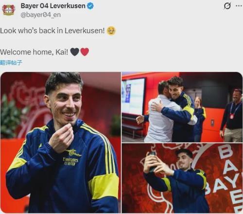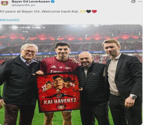勒沃庫森官推賽前歡迎哈弗茨回家,并且賽前還為哈弗茨送上了紀(jì)念品。