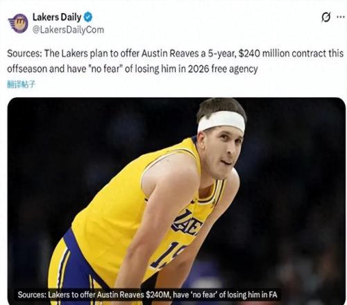 北京時間3月12日,據(jù)洛杉磯當(dāng)?shù)孛襟w《Lakers Daily》報道,聯(lián)盟多位消息人士透露,湖人準(zhǔn)備在今年夏天為里夫斯提供一份為期5年總額高達(dá)2.4億美金的長約合同。