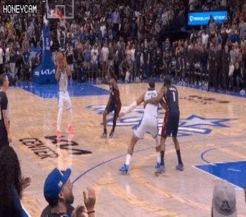 最后20秒,貝恩傳球班凱羅,登哥眼急手快欲繞前搶斷,然后球出界了……