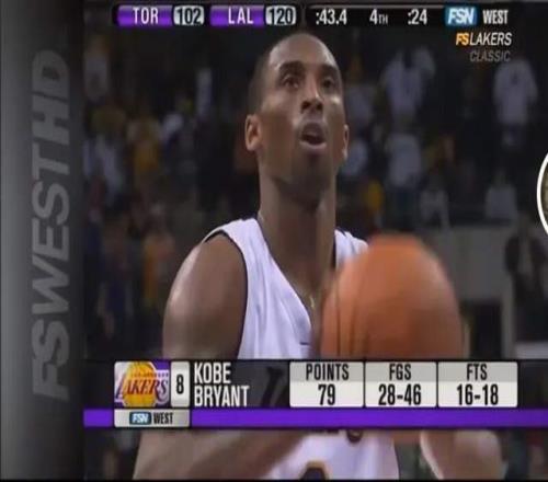 半場(chǎng)結(jié)束,科比18中10,拿了26分。