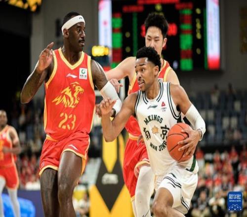 3月11日,南京天之藍(lán)隊(duì)球員馬內(nèi)克(左)在比賽中扣籃。新華社記者 江漢 攝