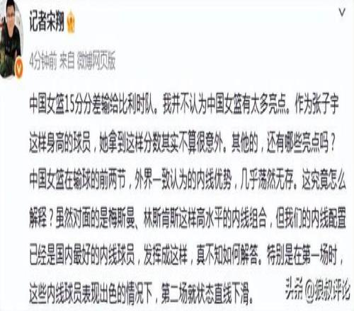 中國女籃15負(fù)完敗比利時引熱議記者吐槽內(nèi)線優(yōu)勢,幾乎蕩然無存