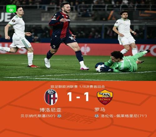 北京時(shí)間3月13日歐足聯(lián)歐洲聯(lián)賽 1/8決賽首回合,博洛尼亞對陣羅馬。下半場貝爾納代斯基進(jìn)球打破僵局,洛倫佐-佩萊格里尼破門將比分扳平。最終比分博洛尼亞 1-1 羅馬。