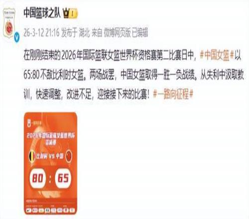 3月12日晚,當(dāng)比利時(shí)女籃在武漢以80-65擊潰中國女籃時(shí),輸?shù)舻牟恢皇潜确郑俏磥硎甑南M?/p>
