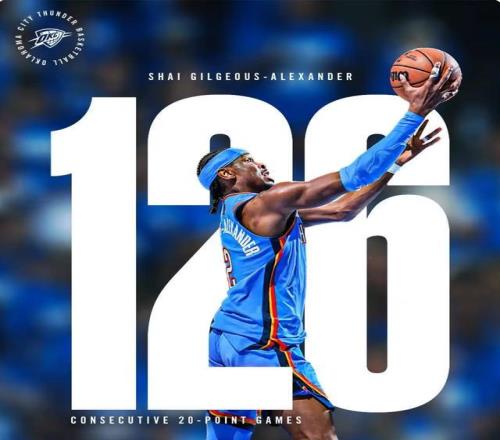 近日,亞歷山大得到35分15次助攻9個籃板的準(zhǔn)三雙,率殘陣雷霆擊潰掘金。最后時刻,亞歷山大連中2記三分,帶走勝利。本場得到35分,也讓亞歷山大連續(xù)得分20+的場次達到126場,追平張伯倫在1962年締造的紀錄。賽后,亞歷山大表示,和那樣的人相提并論,這很特別。