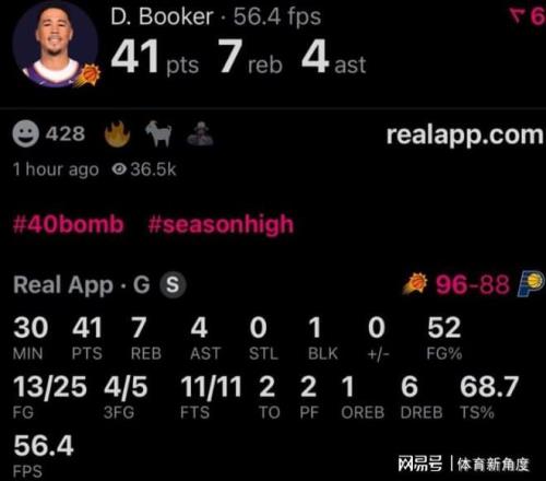 實際上,布克已經(jīng)有將近一年沒有單場砍下40+的得分了。他上一次拿到40+,還得追溯到2025年4月。