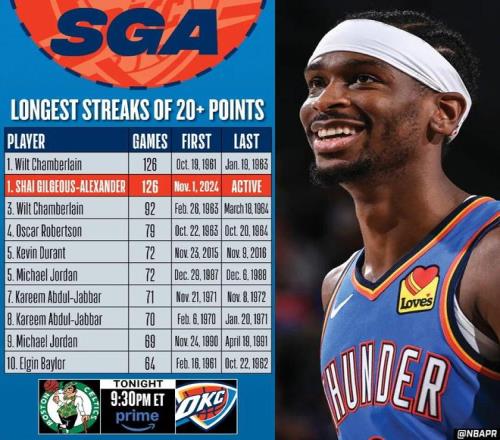 這記中投可不簡單,幫助亞歷山大超越張伯倫(連續(xù)126場20+),達(dá)成了連續(xù)127場20+成就,NBA官方及各大媒體也第一時(shí)間曬圖慶祝。