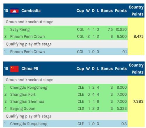 幸運的是,由于澳洲球隊全部出局,總積分榜上中超維持在第四名,保住27/28賽季三個亞冠席位(1個亞冠精英聯(lián)賽正賽+1個亞冠精英聯(lián)賽附加賽+1個亞冠二級聯(lián)賽正賽)。