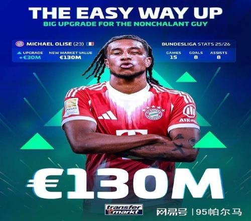 拜仁只用5500萬歐元就招募了奧利塞,在數(shù)據(jù)論的發(fā)酵下,這是一筆物超所值的交易,事實上法國國腳的最新身價達到了1.3億歐元,且在2025年的身價漲幅達6500萬歐元,充分驗證了野蠻生長的趨勢。