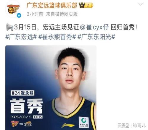 終于來(lái)了!廣東隊(duì)官宣崔永熙首秀打遼寧,杜鋒被逼放棄國(guó)青得分王