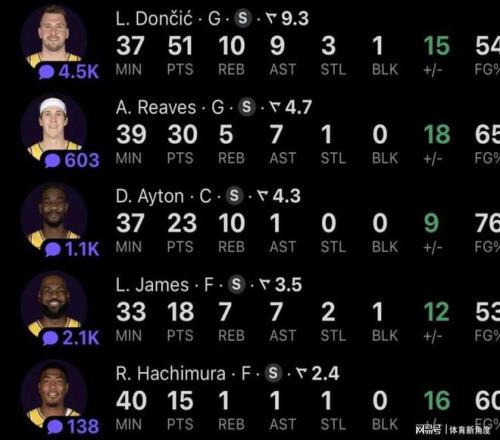然而,即便如此,外界仍有不少質(zhì)疑之聲,認(rèn)為詹姆斯的存在會(huì)限制隊(duì)友的發(fā)揮。但看看昨日,詹姆斯不僅沒有“拖累”隊(duì)友,反而助力東契奇狂砍51分,里夫斯也有30分入賬,艾頓更是交出了23分加10個(gè)籃板的亮眼數(shù)據(jù)。這樣的表現(xiàn),難道還能說是詹姆斯廢隊(duì)友嗎?