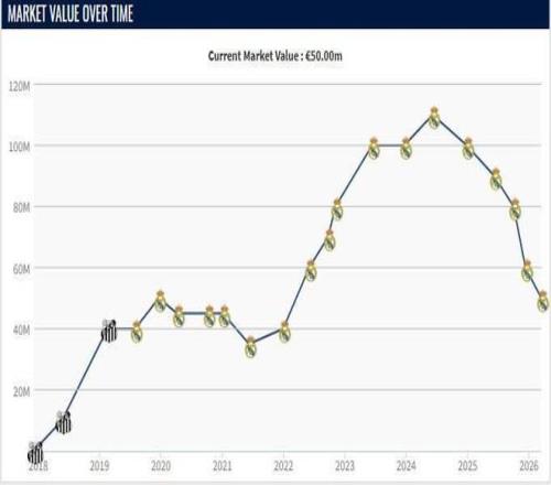 但在姆巴佩加盟球隊之后,羅德里戈在球隊中的重要性下降,上賽季開始,他的身價開始下滑,2024年12月跌至1億歐元,2025年6月跌至9000萬歐元,10月下降至8000萬歐元,12月跌至6000萬歐元,而今年3月則下降至5000萬歐元。