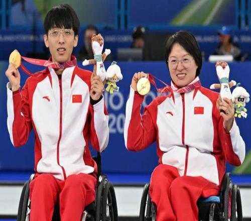 蔡佳云在本屆冬殘奧會(huì)上獲得3枚金牌,是中國(guó)代表團(tuán)首金獲得者,也是獲得金牌數(shù)最多的選手。王蒙和隊(duì)友楊金橋攜手鏖戰(zhàn),奪得冬殘奧會(huì)歷史上首枚輪椅冰壺混雙金牌。