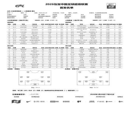 北京時(shí)間3月20日19:00,中超第3輪展開(kāi)爭(zhēng)奪,上海海港做客大連梭魚(yú)灣足球場(chǎng)挑戰(zhàn)大連英博,本場(chǎng)主裁判為王競(jìng),VAR裁判為甘樹(shù)然,賽前雙方首發(fā)出爐。