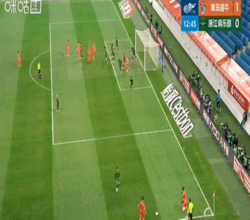 第13分鐘,青島海牛開出戰(zhàn)術(shù)角球,林創(chuàng)益送出精準(zhǔn)傳中,后點(diǎn)埃朱馬高高躍起力壓托利奇頭槌破門,海牛取得1比0領(lǐng)先。