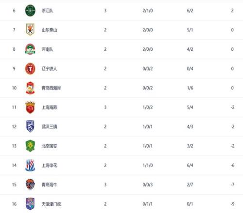 負(fù)分清零第3隊(duì)!浙江隊(duì)3輪2分排第6,海港錯(cuò)失良機(jī),海牛遙遙無期